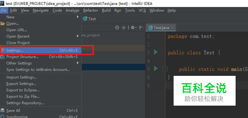 第一步在我们的电脑上打开idea,点击File->Settings,如下图所示: