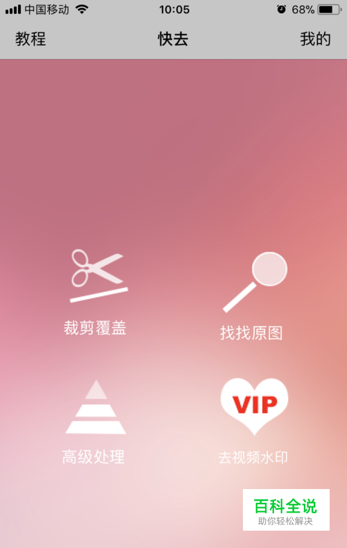 首先要利用手机里的应用商店下载一款软件。如下图名字叫做快去水印,苹果和安卓的都有这个软件。