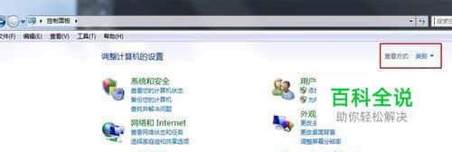进入“控制面板”后,注意右上角的的查看方式为“类别”