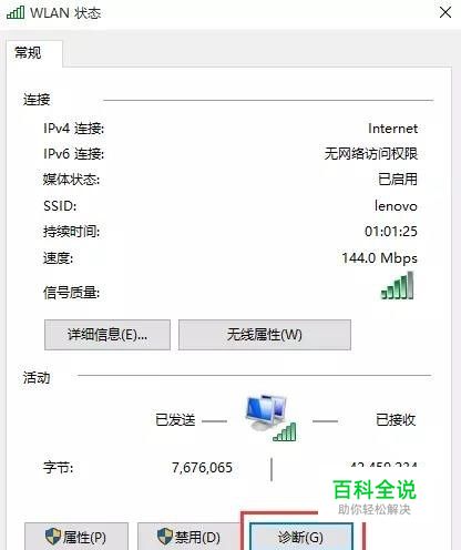 在"WLAN状态"选项卡中,选择“诊断”,然后按提示步骤操作即可