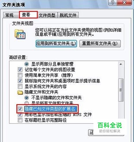 当你想要设置显示与隐藏扩展名的时候却莫名其妙的发现“隐藏已知文件类型的扩展名”这一项选不见了,心理莫名的紧张是不是哪里出问题了呢?