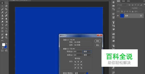 新建500x500像素画布,背景填充蓝色(可以区分白色即可)