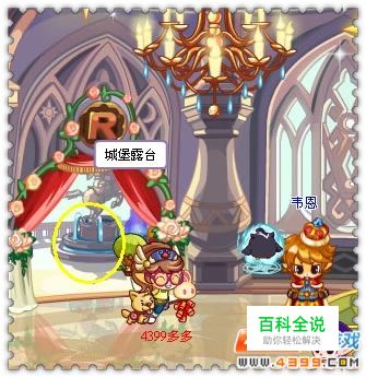 来到城堡露台后,按照下图多多标示的1,2,3,顺序,依次点击水晶