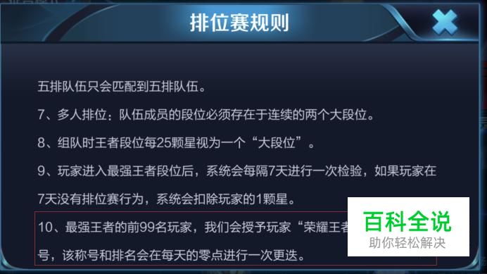 达到王者段位之后,每个大区的前100名就会变成荣耀王者,每天晚上12点更新。