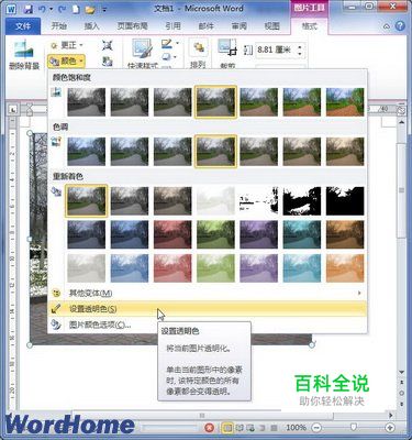 怎样在Word2010文档中设置图片透明色
