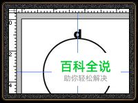拉出两条辅助线确定圆心,用文字工具输入一个字,移至圆上部中央,如图。