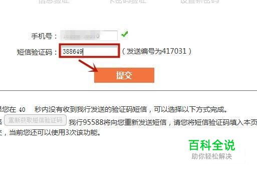最后输入你所收到的验证码并点击提交,就可以修改你的登陆密码了。