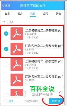 选择需要清除的文档,最后点击 “删除”,这样就能将不需要的文档有选择的删除。