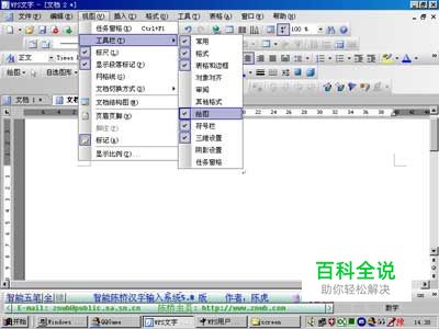 单击视图菜单中,在工具栏菜单中选中绘图。这样绘图菜单就出现在工具栏中,见图1: