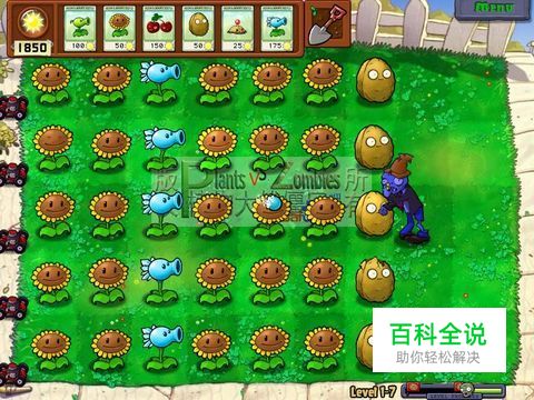 冒险模式1-7(第一轮)的游戏时长虽然不是很长(也可以在后期选择更长时间的关卡) 但是配合冰冻豌豆和坚果拖延游戏时间