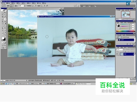 打开ps,文件=》打开=》再在你的电脑盘中打开一幅风景图片和一幅人物图片