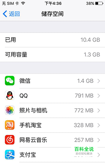 打开【设置】-【通用】-【储存空间与iCloud用量】-【管理储存空间】看看是不是【微信】【QQ】这样的聊天软件占用了最多的内存呢?只要及时清理这些容量,苹果手机内存就不会再紧张了。