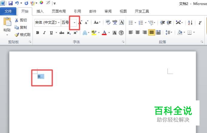 然后我们选中这个字,之后我们点击字号边上的下拉箭头;