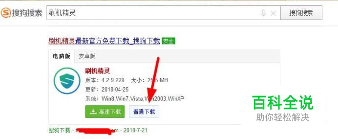 首先我们利用搜狗搜索引擎搜索“刷机精灵”点击普通下载然后将其安装。