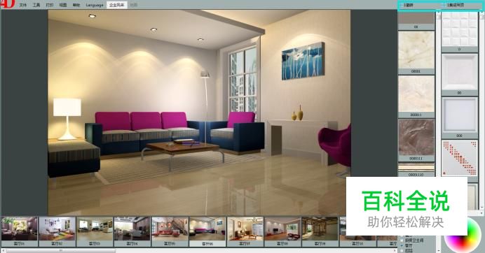我们打开效果图软件,选择一款房型图,这里房型图我们可以自己拍照上传添加,用客户家的房型,用毛胚房都是可以的