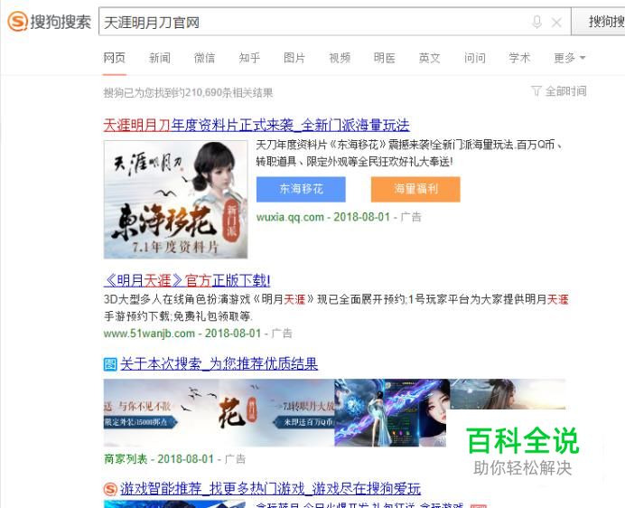 在搜索框中搜索“天涯明月刀官网”,搜索结果如图所示。