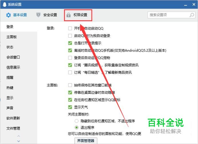 进入设置之后,点击“权限设置”切换到该页面,如图所示。