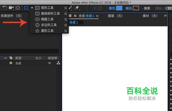 合成创建完成之后进入编辑界面,在上方选择一个形状工具。