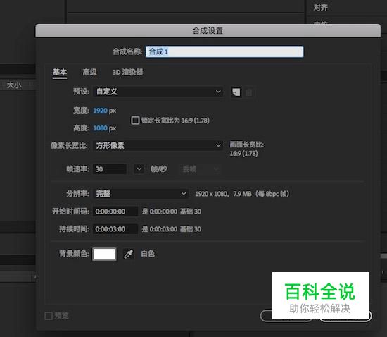 打开电脑中的AE软件,新建一个合成,大小随意,帧速率30f就行了,持续时间也不要太长,快捷键是CTRL+n。