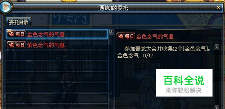 要获得紫色曲玉,首先必须要在青龙大会的战斗中战胜对手获得紫色念气的气息,玩家收集12个紫色念气的气息之后,就可以通过任务来换取紫色曲玉了,如下图所示: