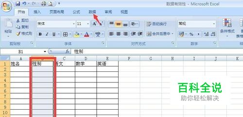 如下表格性别一列中,选中性别列, 点击菜单栏中的 “数据”*--“数据有效性”--