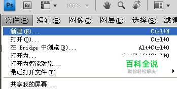 打开PS,点击“文件”→“新建”菜单项,在打开的“新建”窗口中,设置合适的大小,比如本经验中的“500*500”大小,背景内容设置为“透明”,点击“确定”按钮。