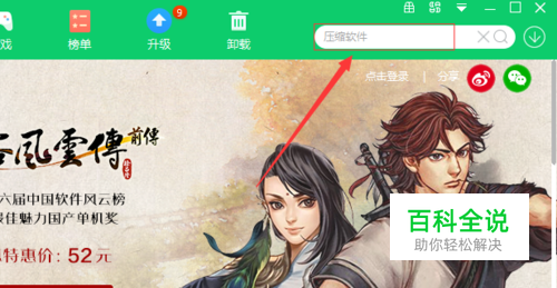第一,在电脑上打开360软件管家,在搜索框中输入 压缩软件,并进行搜索;