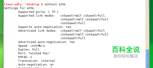 执行命令:确认刚才插入网线的网卡,对应于系统中网卡名称: 确认每块网卡的信息: 当Link detected: yes表示该网卡处于连接状态,记住该网卡的名字(eth0或eth?)