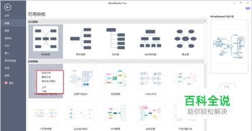 打开思维导图MindMaster软件后,选择一个模板,单击右键,即可显示浮动功能按钮。