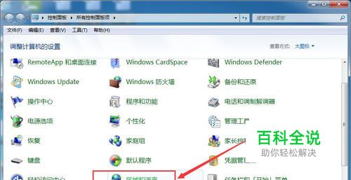 小编首先打开控制面板,找到“区域和语言”选项,点击打开。