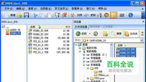打开添加文件窗口,在“文件浏览器”窗格中,选中事先准备好的DVD视频文件夹(即VIDEO_TS),并将其拖曳到DVDVideo1_DVD窗格的VIDEO_TS文件夹中。