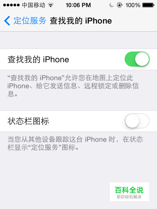 将“查找我的iphone”的状态栏向右移即可在地图上定位此iphone、给他发信息、远程锁定和删除信息。