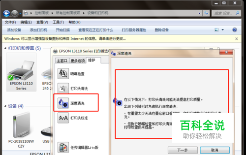 进入到【打印首选项】页面,我们选择【维护】,选择【深度清洗】,如下图所示,