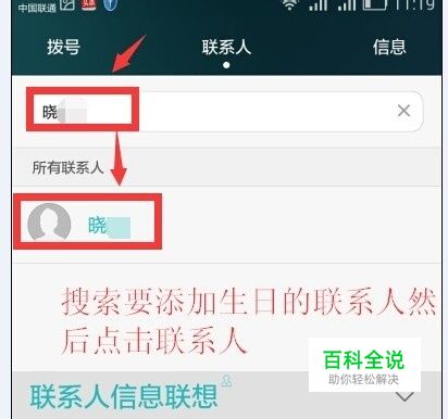 搜索要添加生日的联系人然后点击联系人