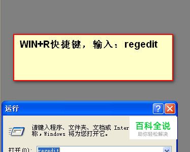 WIN+R快捷键打开运行命令,输入:regedit,确认运行