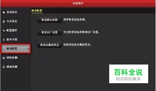备注:恢复出厂只是针对设备配置恢复,不会对硬盘数据有影响,也不会对设备固件版本有影响。