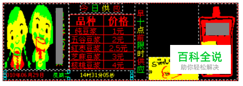 在字幕编辑对话框中输入文字“今日供应”。如图。选中文字,将文字的字体设置为幼圆,文字大小为 10,点击字体探针,设置字体颜色,如果为双色屏,则有黑、红、黄、绿四种颜色可以选择,如果为单色屏,则只有黑红两种颜色。点击扩大字体间距探针,设置字间距。推出设置对话框,用鼠标拖拉字幕边框,到所需要的大小。拖动字幕,放在需要的位置。