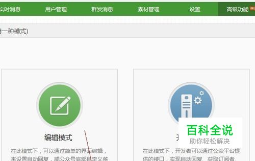 一.登陆微信公众平台。点击进入“高级功能”。然后点击编辑模式下面的“进入”