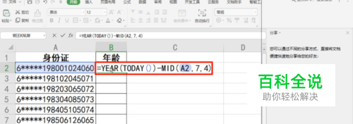 在单元格内输入公式=YEAR(TODAY())-MID(A2,7,4)