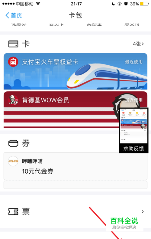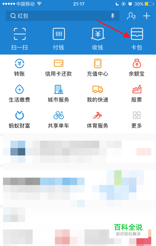 打开支付宝,点击 卡包