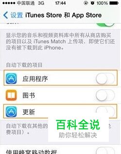 设置选项→“iTunes Store和App Store”选项→关闭App的自动下载和自动更新功能。