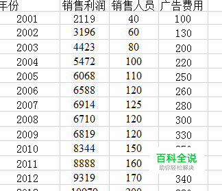首先,我们的数据如图所示,以销售利润作为因变量,人员和费用作为自变量: