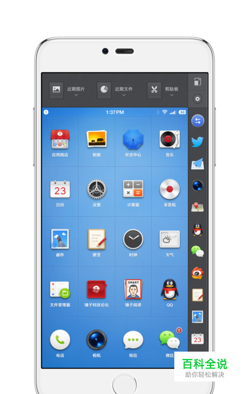 锤子手机,自己的操作系统和用户界面—Smartisan OS v3.6.n。系统自带录屏功能。