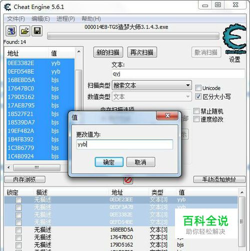 文本搜索ywhl,把搜到的值拉下来,暂时不管,新的扫描,搜sxyg,也拉下来,把所有拉下来的值全改成fsqq(也就是两个一起改)。 在合成栏里放上阴阳斩龙剑和两个粉色气球,得2.5成长率的爻阴,保存(一定要保存,因为改的值比较多,随时会崩溃)