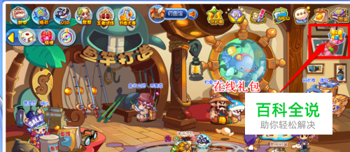 在首页,的右侧,有一个礼物盒的图样,点击,出现在线礼包。