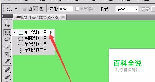 第一种方法是使用矩形选框工具,如图所示,选择这个工具在新建的图层上绘制一个大小合适的选区。