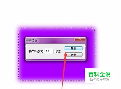 然后执行一个选择---修改--平滑的命令,对选区边缘的弧度进行设置。具体的参数值越大,那么弧度就越明显越接近圆弧形状。