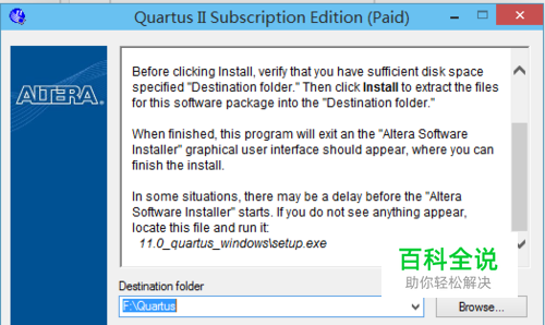 在弹出来的quartus ii 11.0安装对话框里选择你想解压这软件的文件夹位置后,点击“Install”按钮