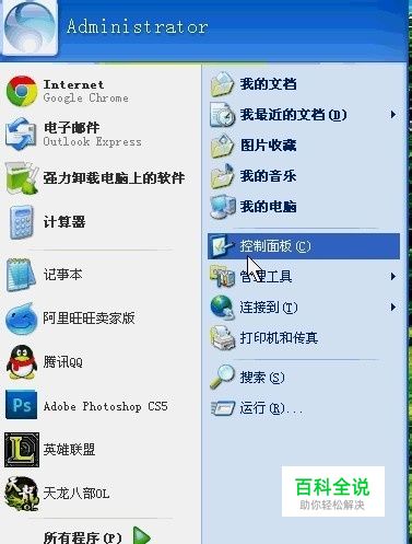 点击任务栏 开始 - 控制面板 如下图