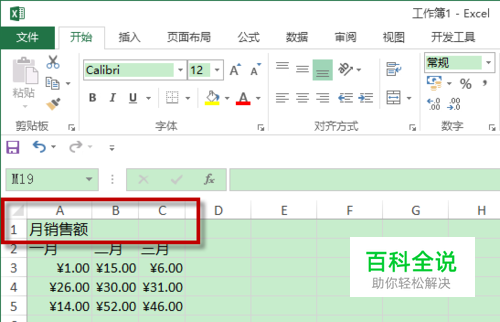 如下图所示,如果想要合并 “A1:C1”3个单元格,只需选中A1:C1单元格区域,然后单击“开始”选项卡下的“对齐方式”工作组中的“合并单元格”命令。如下图所示